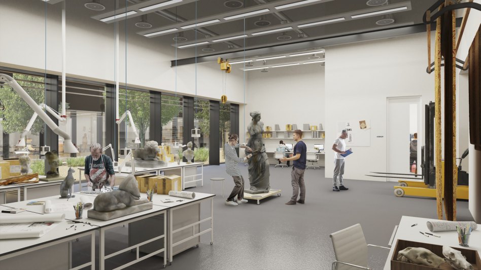 Set in a landscape of wildflower meadows, JMP’s design for the new archaeological research facility for the British Museum (BM_ARC) is located adjacent to the University of Reading’s Thames Valley Science Park in Shinfield, Berkshire. The 15,500m² state-of-the-art facility provides space to study, share and conserve objects and works of art from the internationally renowned British Museum’s research collection, specifically sculptures, mosaics and historic casts. The new development is an active and integral part of the British Museum, with a strong focus on global research. Study rooms provide university students, academics, school groups and members of the public with enhanced access to the collection. A dedicated hub facilitates loans from the Museum’s research collection directly to local, national and international venues.