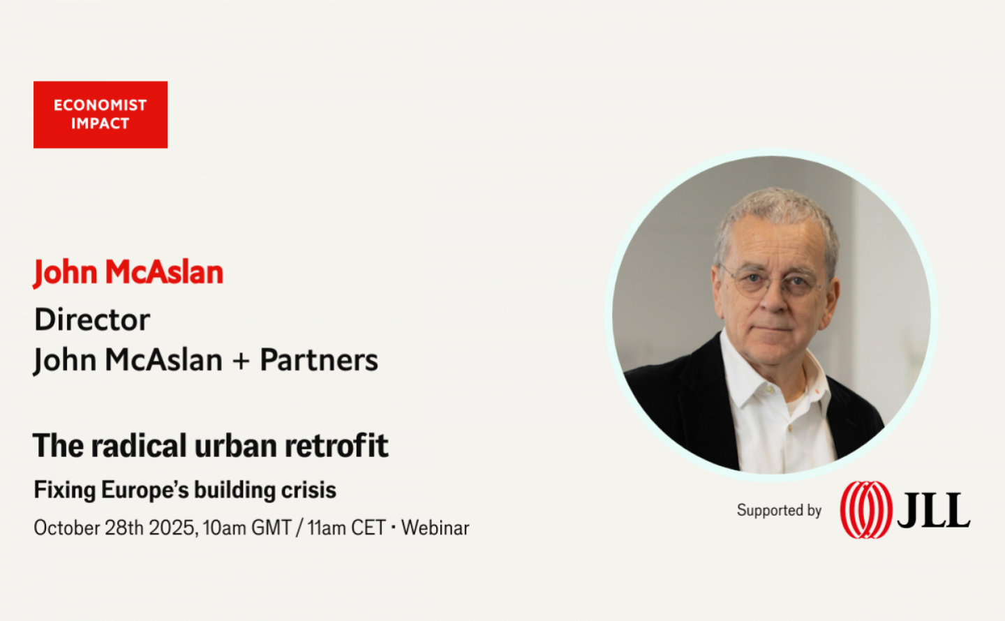 We are pleased to share that John McAslan, Executive Chairman and Founder of John McAslan + Partners, will be speaking at The Radical Urban Retrofit: Fixing Europe’s Building Crisis – a live webinar hosted by Economist Impact and supported by JLL – on Monday, 28 October.