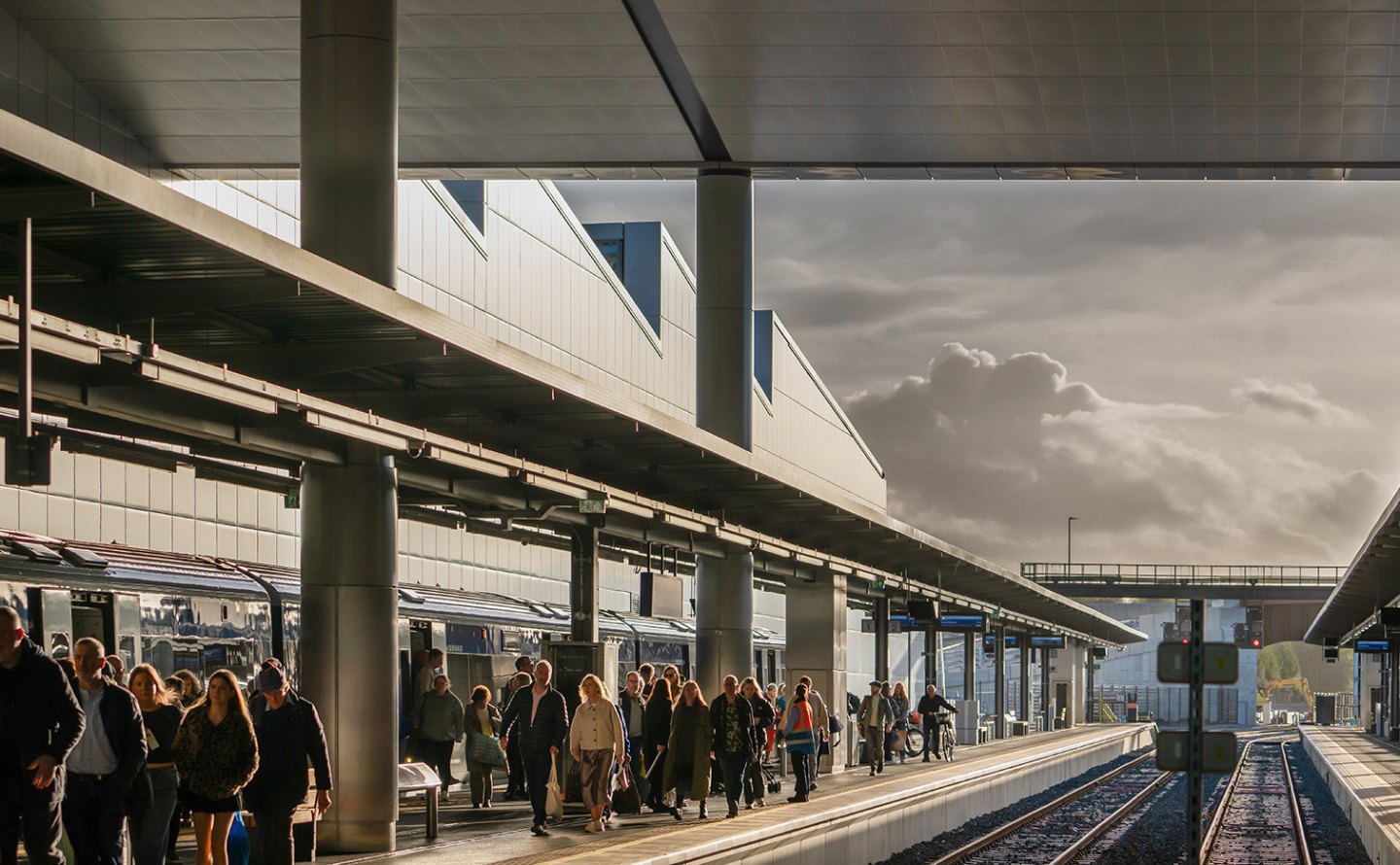 "This passenger-focused station is designed around a singular unified roof with minimal structure internally. It prioritises intuitive wayfinding with unencumbered views from one decision point to the next and makes the most of the long vistas out of the building and to the surrounding landscape. Importantly, the building also establishes a focal point and catalyst for the new Weavers Cross urban quarter.