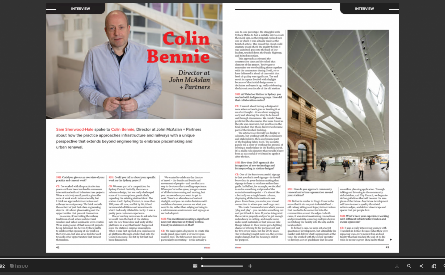 CB: I've worked with the practice for ten years and have been involved in numerous international rail and infrastructure projects. We're a relatively small practice given the scale of work we do internationally, but I think we approach infrastructure and railways in a unique way. We think outside the context of just first-class engineering objects – it's about placemaking and the opportunities that present themselves.
