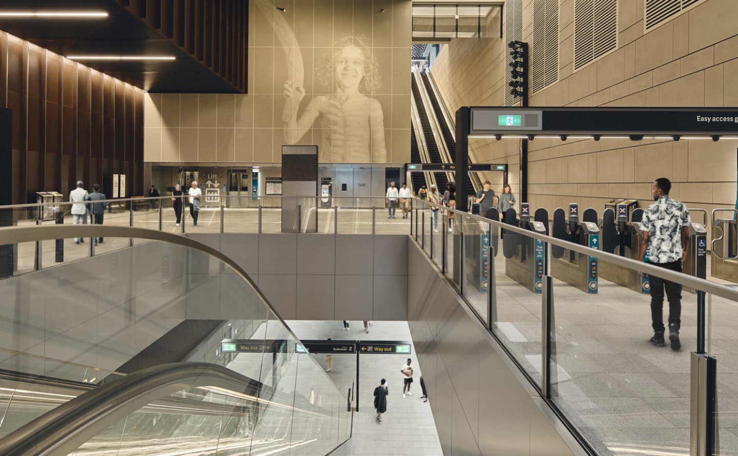 Designed by John McAslan + Partners, this landmark station forms a vital part of Sydney Metro’s city-shaping infrastructure. More than a transport hub, it is a civic place – one that responds to Waterloo’s rich Indigenous, social and industrial histories, and integrates architecture, infrastructure, landscape and public art into a cohesive, people-centred design.