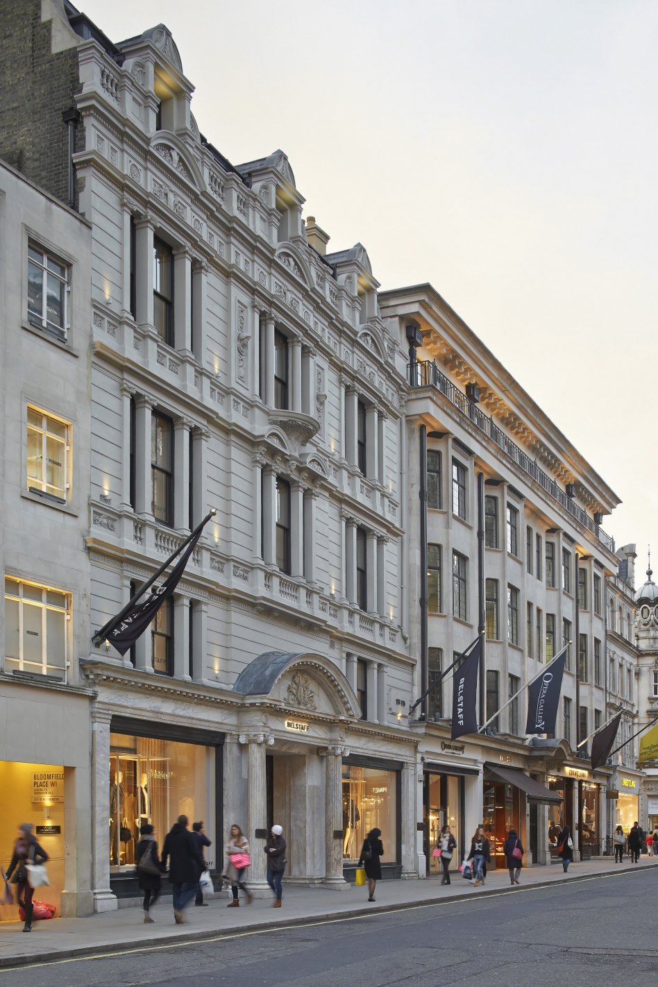 This mixed office and retail development at the heart of New Bond Street, one of London's premier retail streets, involved the partial demolition, rebuilding and renovation of a Grade II listed building, including its elaborate Beaux-Arts facade.