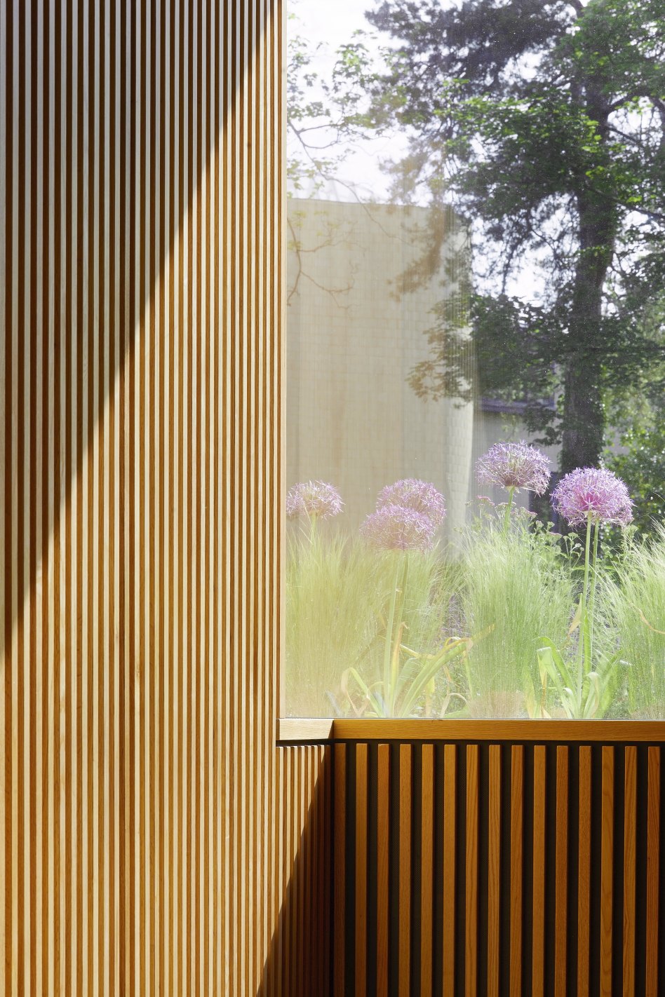 The building form was partly determined by archaeological remains of 17th-century defensive earth ramparts to the rear of the site that originate from the English Civil War. Glazing to front and rear of the ground floor rehearsal room provides views through the building to the ramparts, illuminating historic context while providing active frontage to the street.