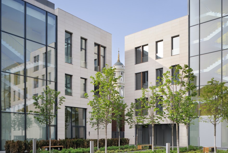 The Stanislavsky Factory complex, with buildings from the late 19th to mid-20th centuries, was the practice’s first completed project in Moscow, and won the first RIBA Award for a scheme by a UK architect in Russia. It also set a benchmark for the adaptive re-use of historic buildings in Moscow, delivering 60,000m² of office space, 60 luxury apartments, a boutique hotel, restaurant, and the renovated Stanislavsky Theatre, which staged the first production of Chekov’s play, The Cherry Orchard, in 1903. The practice’s landscape design, highly praised by Moscow’s Mayor, was the first in the city to turn a backland site into a biodiverse public realm.